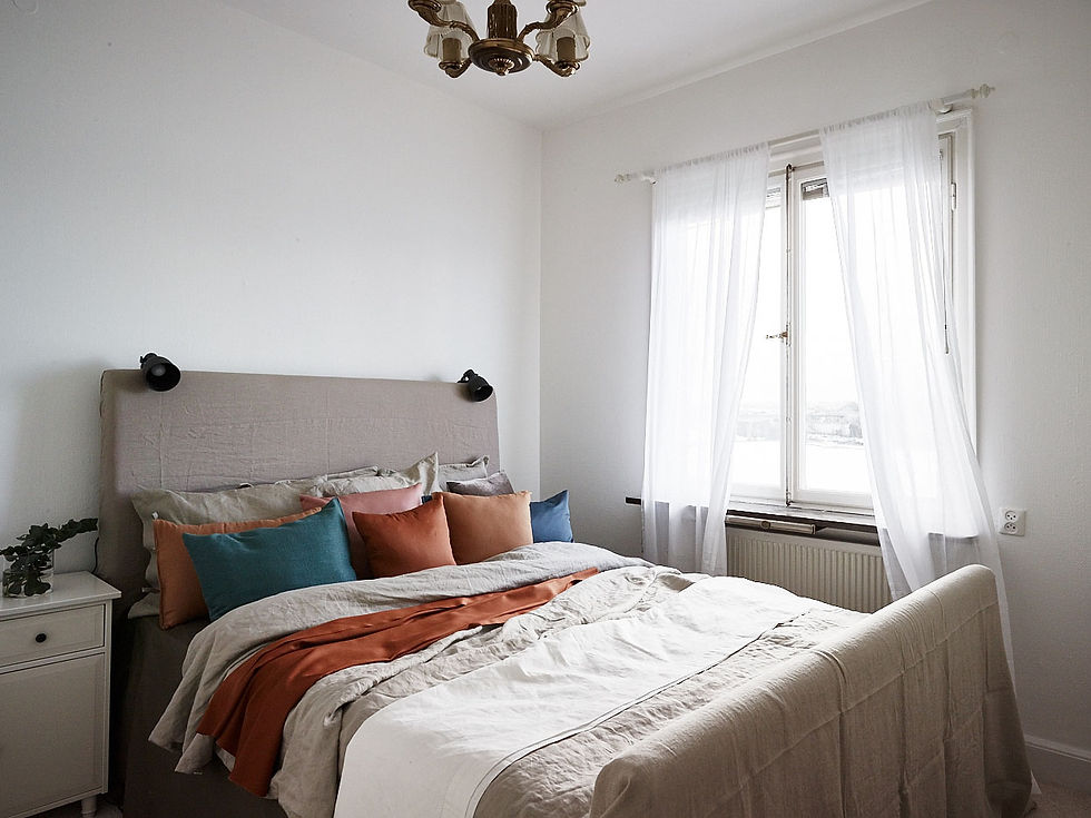 Jag hade med mig loungemöbler, balkongmöbler, samtliga textilier, mattor, inredningsdetaljer, belysning, tavlor, färska snittblommor, krukväxter och balkongblommor. Detta blandade vi med kundens egna befintliga möblemang för att behålla det personligt.